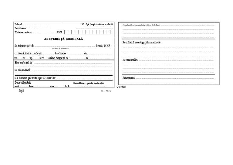 Adeverinta Medicala Model 2017