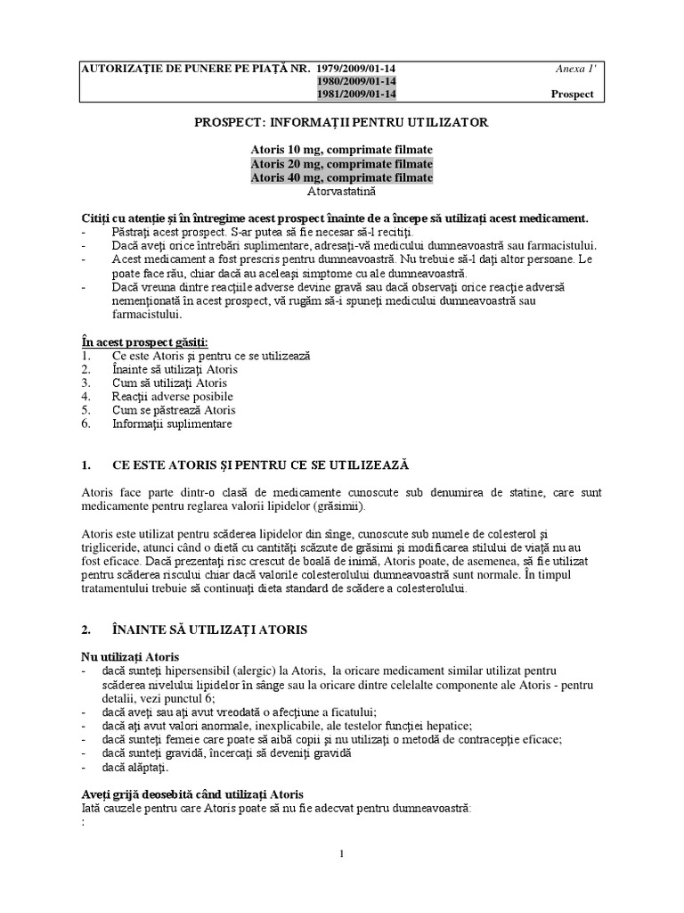 Atoris 10 mg prospect. Doza initiala uzuala de atoris este de 10 mg o data pe zi la adulti adolescenti si copii cu varsta de 10 ani sau mai mare. As we said before you will also need to change your lifestyle and diet to achieve the best effect and preserve your health. This medicine is to be used for longer periods of time. Initial dose is usually atoris 10 mg once a day.