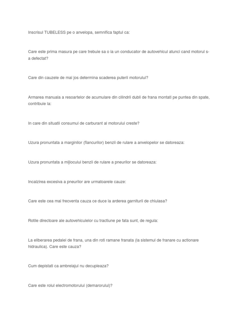 întrebare chestionare drpciv categoria d d1 tb tv capitolul noțiuni de mecanică. Turația la relanti trebuie să fie aproximativ între 700 1000 rotații pe minut și nu este identică la toate autovehiculele. întrebarea 266 din 779 ce cauze pot conduce la un consum exagerat de combustibil. Dupa trimiterea cererii vei primi un email pe acesta adresa.