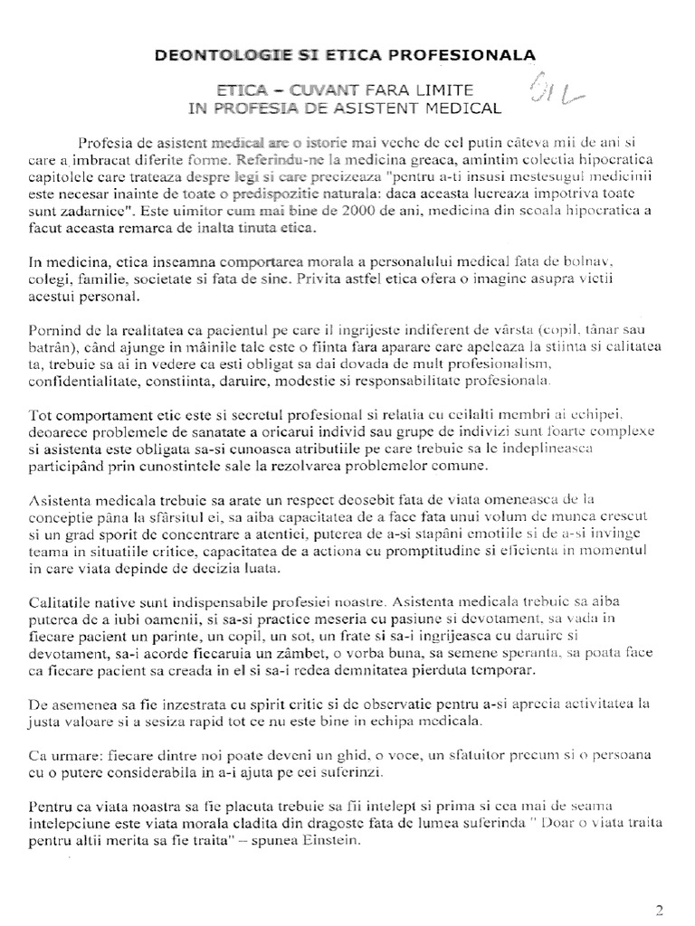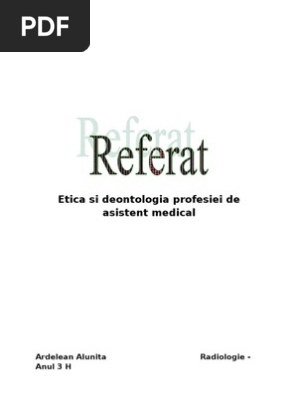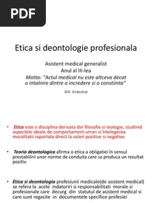 Deontologie si etica profesionala asistenti medicali referat. Mai jos poate fi vizualizat un extras din document aprox. B respectarea obligațiilor profesionale de către asistenții medicali generaliști moașe și asistenții medicali. Codul de etică și deontologie al asistentului medical generalist al moașei și al asistentului medical din românia are drept principal scop. Radiologie etic ethos este considerat tiina comportamentului moravurilor studiul teoretic al principiilor care guverneaz problemele practice.