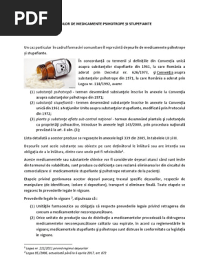 8 din legea nr. 143 2000 privind prevenirea şi combaterea traficului şi consumului ilicit de droguri precum şi a art. 9 2007 pentru modificarea legii nr. 1 dispoziţii generale legea 339 2005 actualizata stupefiante psihotrope.
