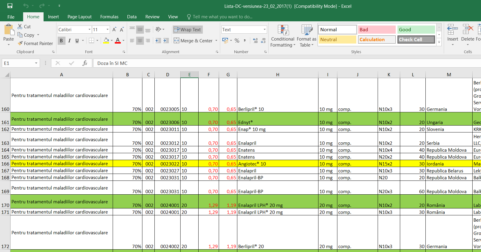 Lista medicamente compensate 2017 xls. Lista medicamentelor 2014 aprilie 23 2014 00 00 de care beneficiază asiguraţii în tratamentul ambulatoriu cu sau fără contribuţie personală pe bază de prescripţie medicală în sistemul de asigurări sociale de sănătate începand cu data de 01 01 2014 cu modificările şi completările ulterioare. Persoanale asigurate vor beneficia de azi 10 iulie de mai multe medicamente compensate. Fișiere atașate lista medicamentelor c2 01 10 2020 pdf lista medicamentelor 01 10 2020 pdf lista medicamentelor c2 01 09 2020 pdf lista medicamentelor valabila 01 09 2020 pdf lista medicamentelor valabila 01 08 2020 pdf lista medicamentelor c2 valabila 01 08 2020 pdf lista medicamentelor c2 modif anexa 2 si anexa 3 val de la 01 07 2020 pdf lista medicamentelor valabila 01 07 2020 pdf. Asta după ce lista medicamentelor compensate din fondurile de asigurare obligatorie de asistență medicală a fost completată cu cinci denumiri comune internaționale.