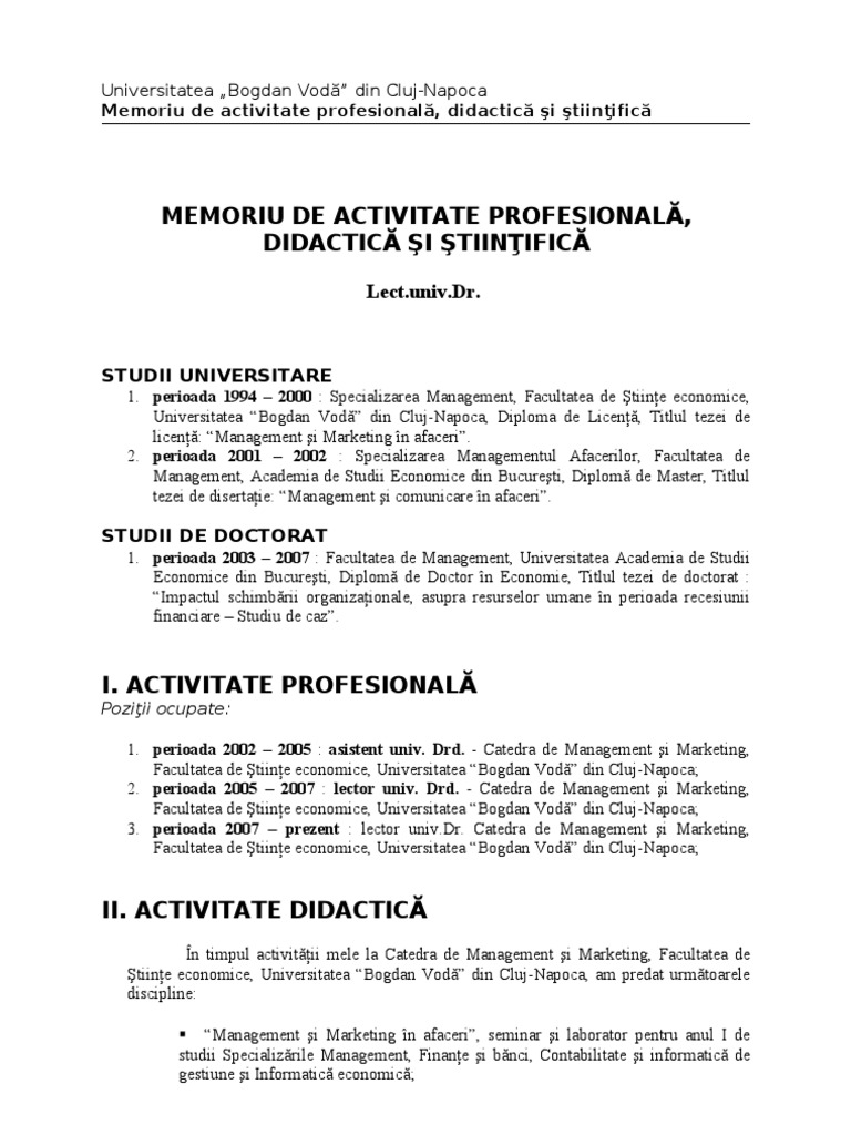 Memoriu de activitate stiintifica. Memoriu de activitate metodico stiintifica. 4 29 2005 3 56 50 pm. Stanciu pătru radu data şi locul naşterii. Memoriu de activitate profesională didactică şi ştiinţifică numele dicu prenumele.