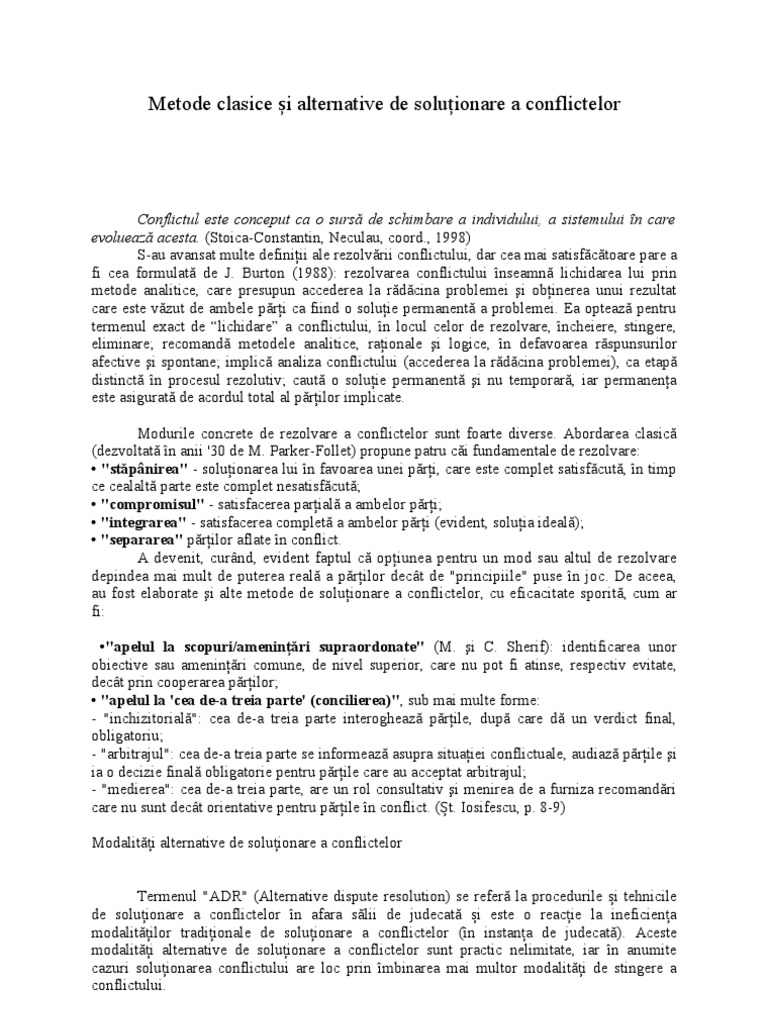 Metode de rezolvare a conflictelor referat. De exemplu in cadrul sesiunilor obisnuite de instruire sau pregatire pentru ingineri agenti de vanzare ar putea fi subliniata importanta avantajului general prin introducerea de noi produse in loc sa puna. Exista trei modalitati de evitare a conflictelor. Referat metode de rezolvare a conflictului din cadrul echipei pentru facultate. Vlasceanu 1993 au propus o tehnica bazata pe cooperare intre grupurile oponente intr o situatie de rezolvare a unei probleme.