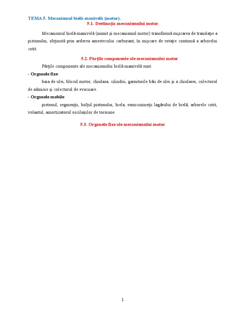 Pistonul segmentii boltul de piston biela arborele cotit volantul. Materialele din care sunt confecționate organele sale componente sa aibă un coeficient de dilatare mic deoarece in caz contrar datorita temperaturilor mari la care funcționează aceasta ar putea conduce la blocarea mecanismului greutate minima a organelor mobile pentru a reduce la minim forțele de inerție. Care sunt organele mobile ale mecanismului motor. Curs de legislaţie pdf indicatoare şi marcaje codul rutier.