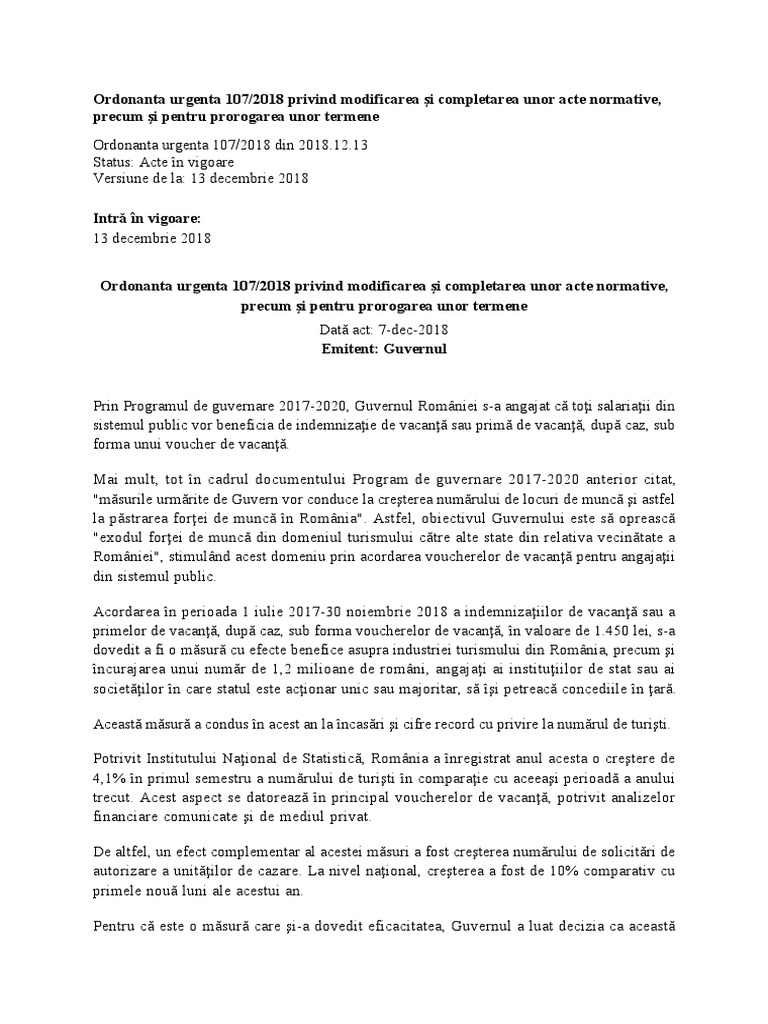 107 2018 din 7 decembrie 2018 privind modificarea și completarea unor acte normative precum și pentru prorogarea unor termene emitent. 107 2008 ordonanta de urgenta pentru modificarea anexei nr. Guvernul româniei publicată în. 691 din 20 septembrie 2002.