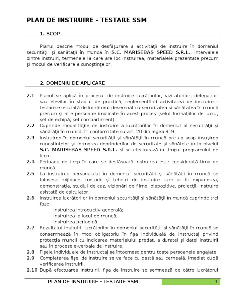 Plan de instruire a personalului model. Mai jos poate fi vizualizat cuprinsul si un extras din document aprox. Procesul de instruire si dezvoltare a personalului organizatiei este un proces planificat si sistematic care are ca obiectiv eliminarea decalajului dintre nivelul de performanta existent si cel dorit. 3 0 data 24 09 2012 exemplar nr. In vederea calificarii corespunzatoar a personalului operarea si controlul sistemului de gestionare a deseurilor este necesara o instruire corespunzatoare necesitatilor.