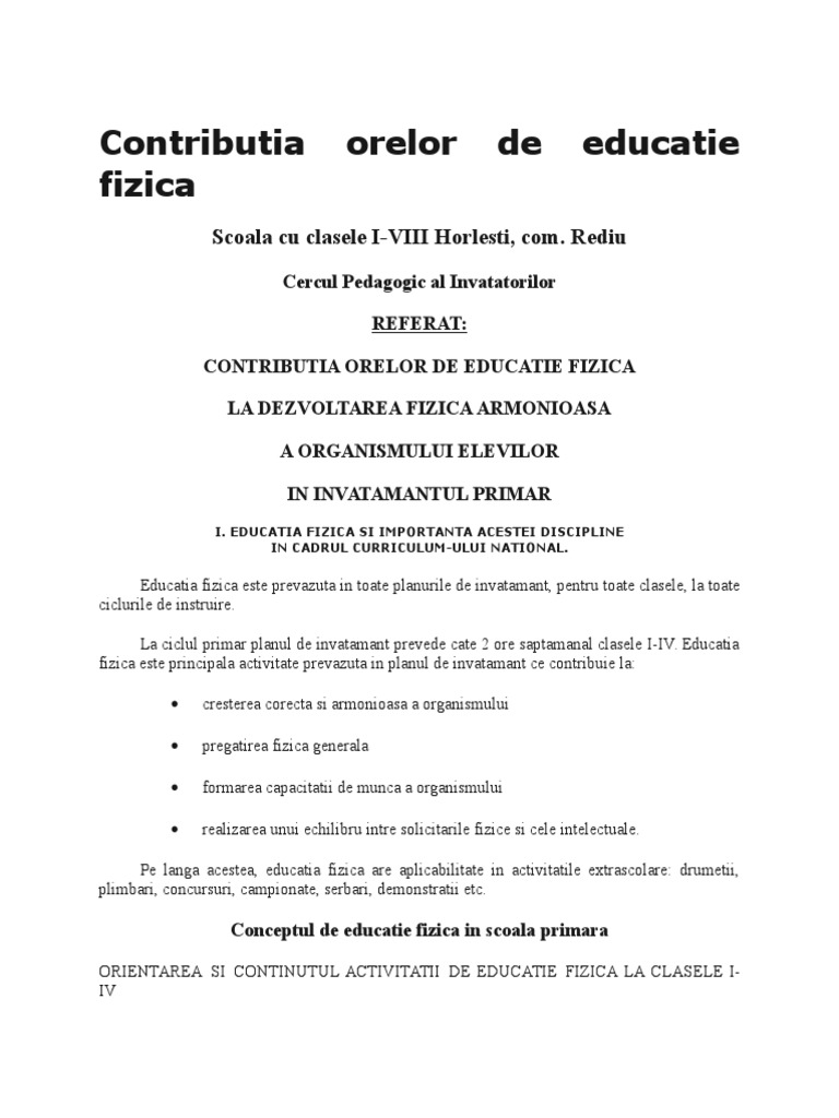 Educatie fizica si sport 1 mesaj. Ultima zi de inscriere este vineri 17 iulie. Util pentru fiecare inceput de an scolar. I elevii claselei cu ocazia prelucrrii i lurii la cunotin a regulilor de proteci a muncii i de prevenire a accidentelor la orele de educaie fizic i activiti sportive.