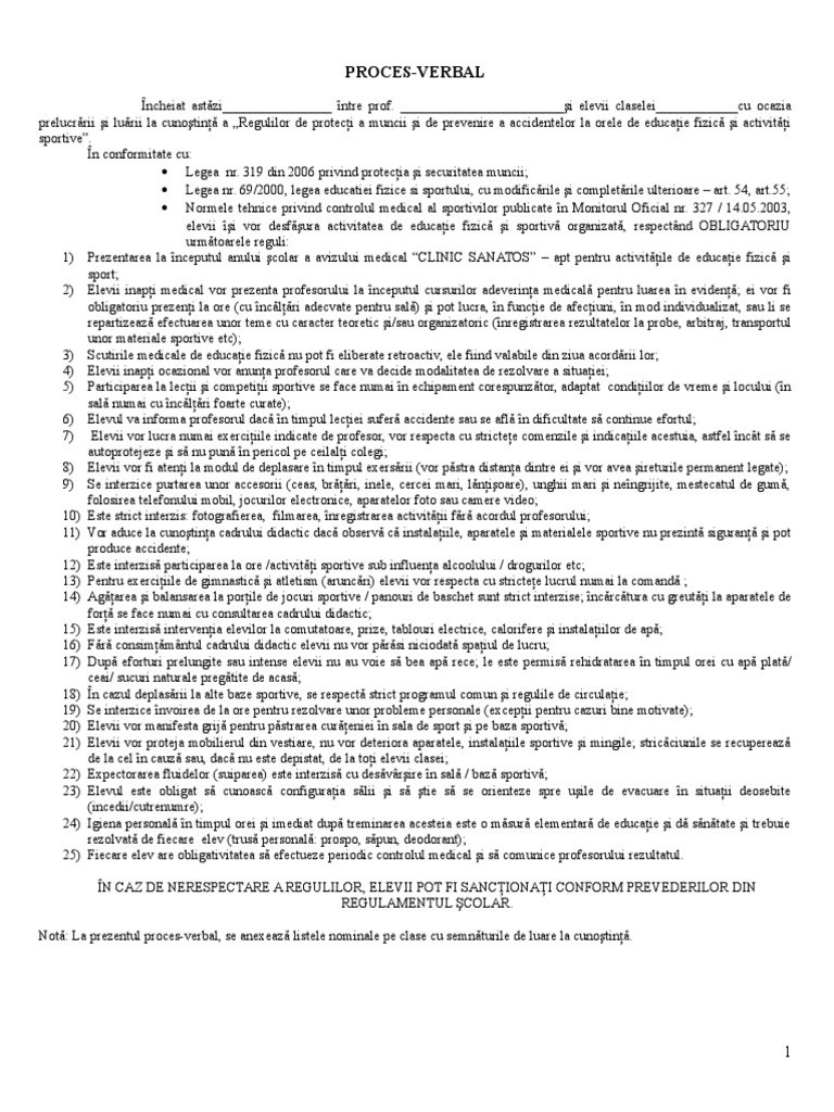 Proces verbal protectia muncii educatie fizica. Prima pagină învăţământ gimnazial educatie fizica si sport diverse proces verbal protectia muncii ed fizica 17 septembrie 2013 11 42 0 stele 0 review ur. 0 stele 0 review uri. Formular care se încheie între diriginte şi elevii clasei. 69 2000 legea educatiei fizice si sportului cu modificrile i completrile.