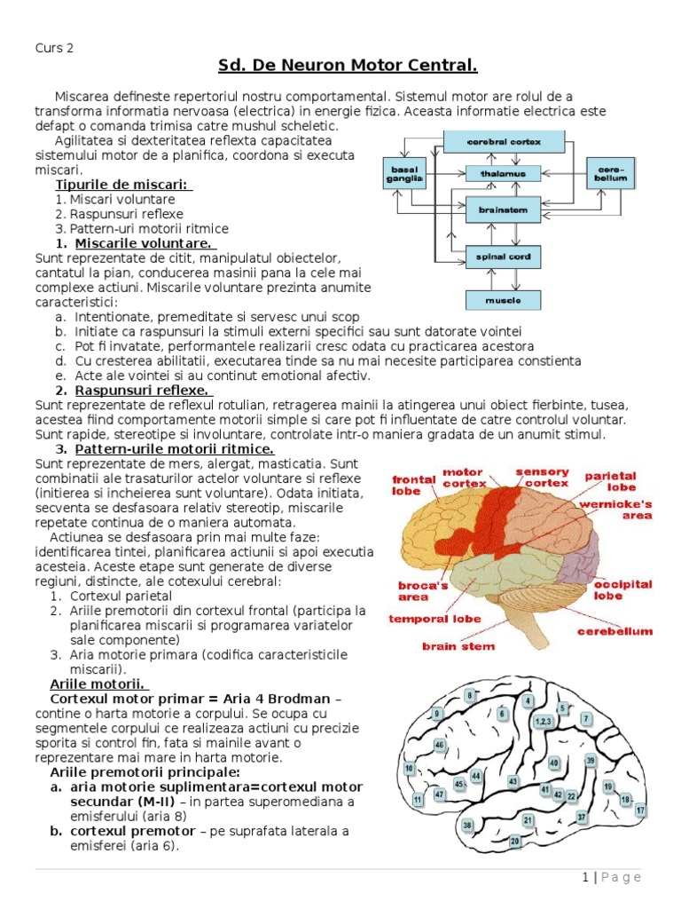 Sindrom de neuron motor central. Neuronul motor central asigură controlul motilităţii voluntare funcţia fazică şi al tonusului muscular funcţia tonică şi transmite stimulul la nivelul neuronului motor periferic minea 2003 p 65. Este reprezentată de deficitul motor care este extins şi. Apare in accidente vasculare cerebrale tumori cerebrale si medulare mielite fracturi de rahis scleroza laterala amiotrofica etc. Simptomatologie sindromul de neuron motor central apare secundar leziunilor neuronilor piramidali sau a prelungirilor acestora fibrele corticospinale şi constă în.