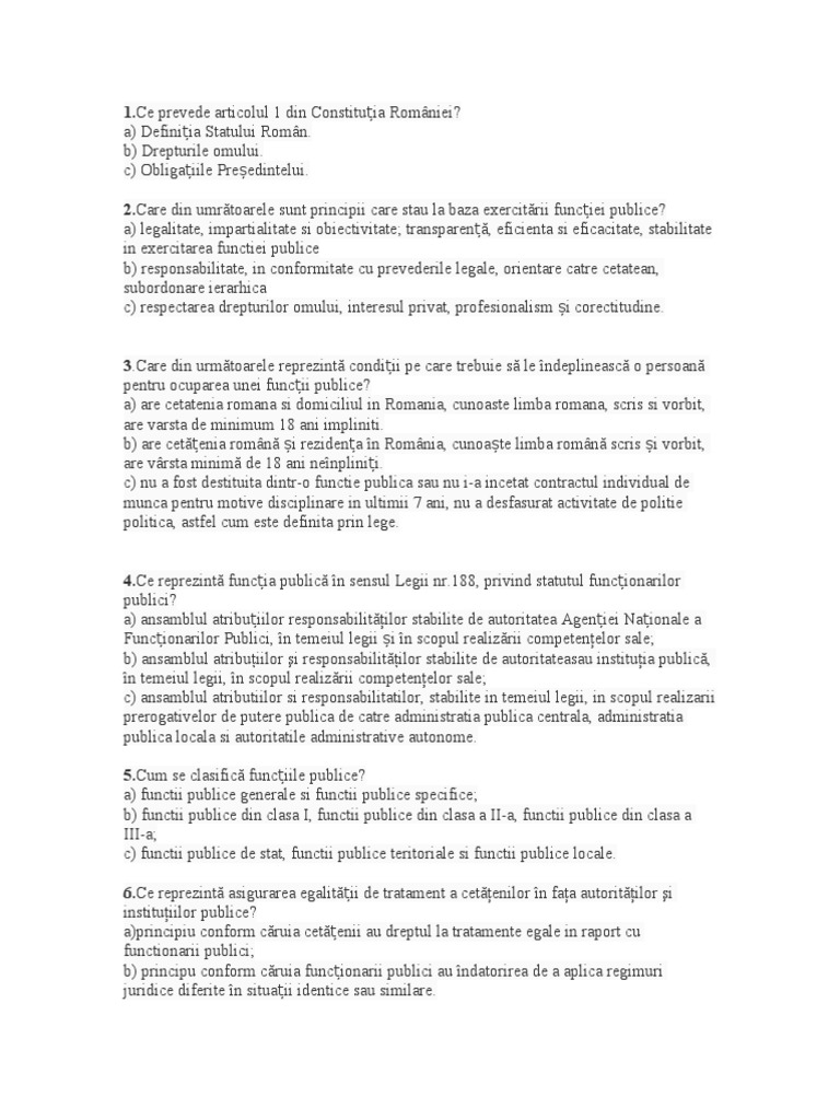 Mai jos poate fi vizualizat un extras din document aprox. 188 1999 privind statutul functionarilor publici consolidata 2009 republicat in monitorul oficial partea i nr. Legea 188 1999 test grila by popeshd. Iti recomandam sa te uiti bine pe extras si pe imaginile oferite iar daca este ceea ce ti trebuie pentru documentarea ta o poti descarca.